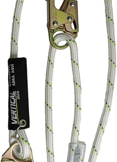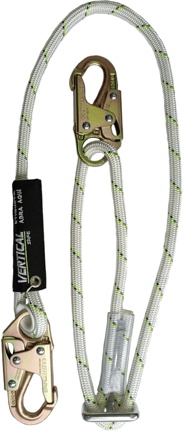 Equipo parte de un sistema para trabajos de posicionamiento ó restricción de caídas. Posee dos mosquetones de 3/4 con una resistencia de 5000 Lbs y 3600 Lbs en puerta, hebilla de aluminio para regular la longitud de la eslinga.